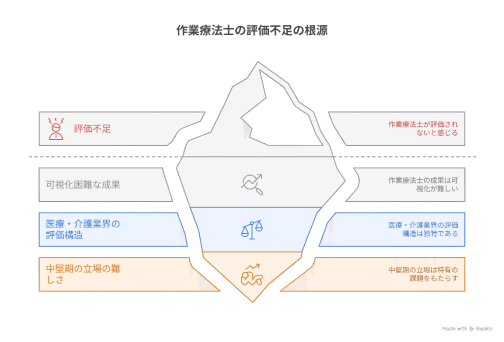 多くの作業療法士が「自分がまだ未熟だから評価されない」と考えがちですが、実は個人の能力だけが原因ではないことも多いのです。